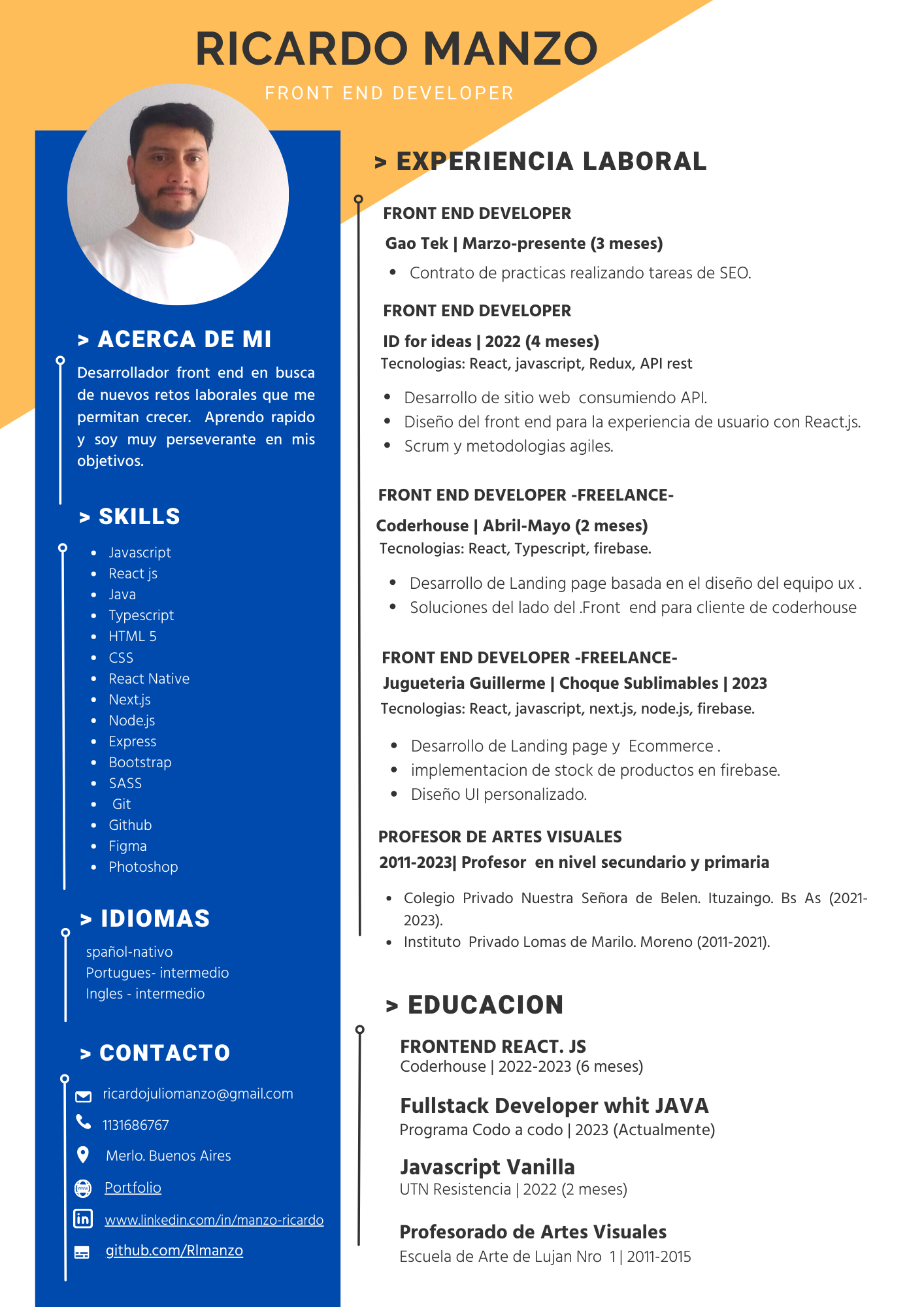 Desarrollador Front end en constante crecimiento y aprendizaje.